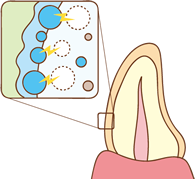 ホワイトニング剤を塗布し、過酸化尿素(または過酸化水素)が色素を分解している状態です。